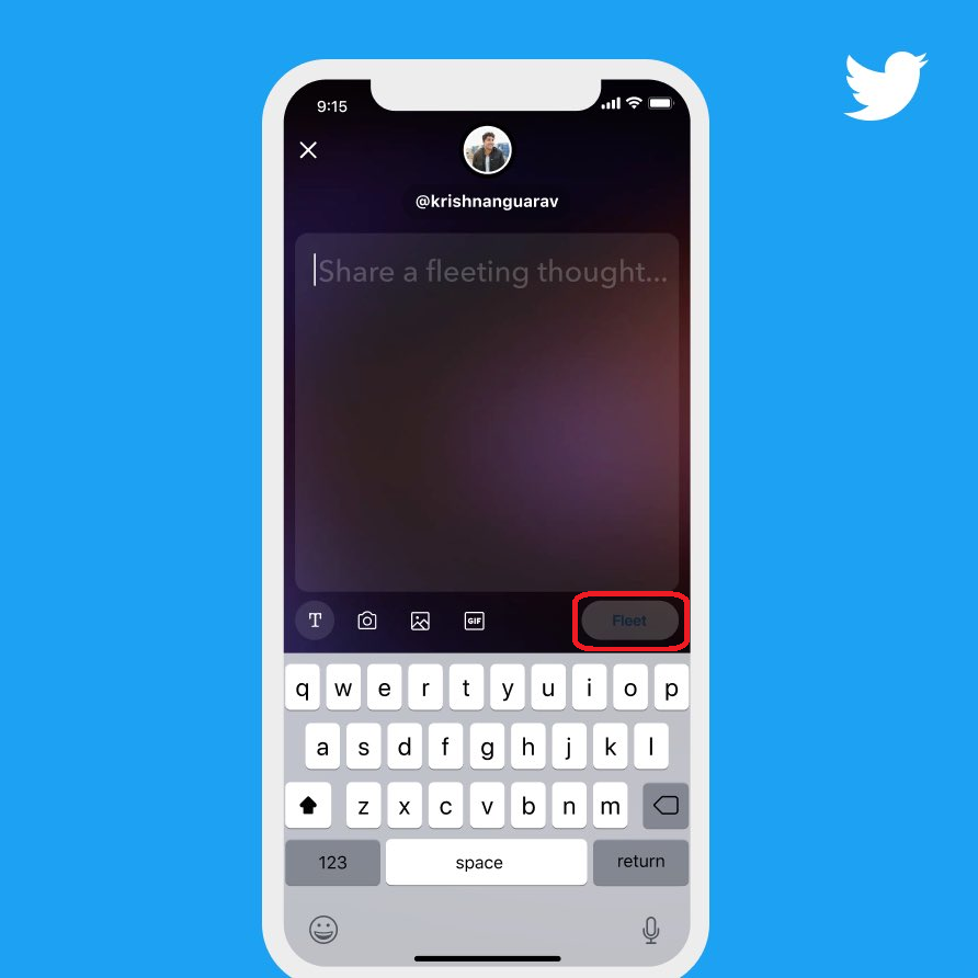 Step #3: When it is done, tap on the "Fleet" button on the right bottom of the screen to let your fleet free on Twitter.