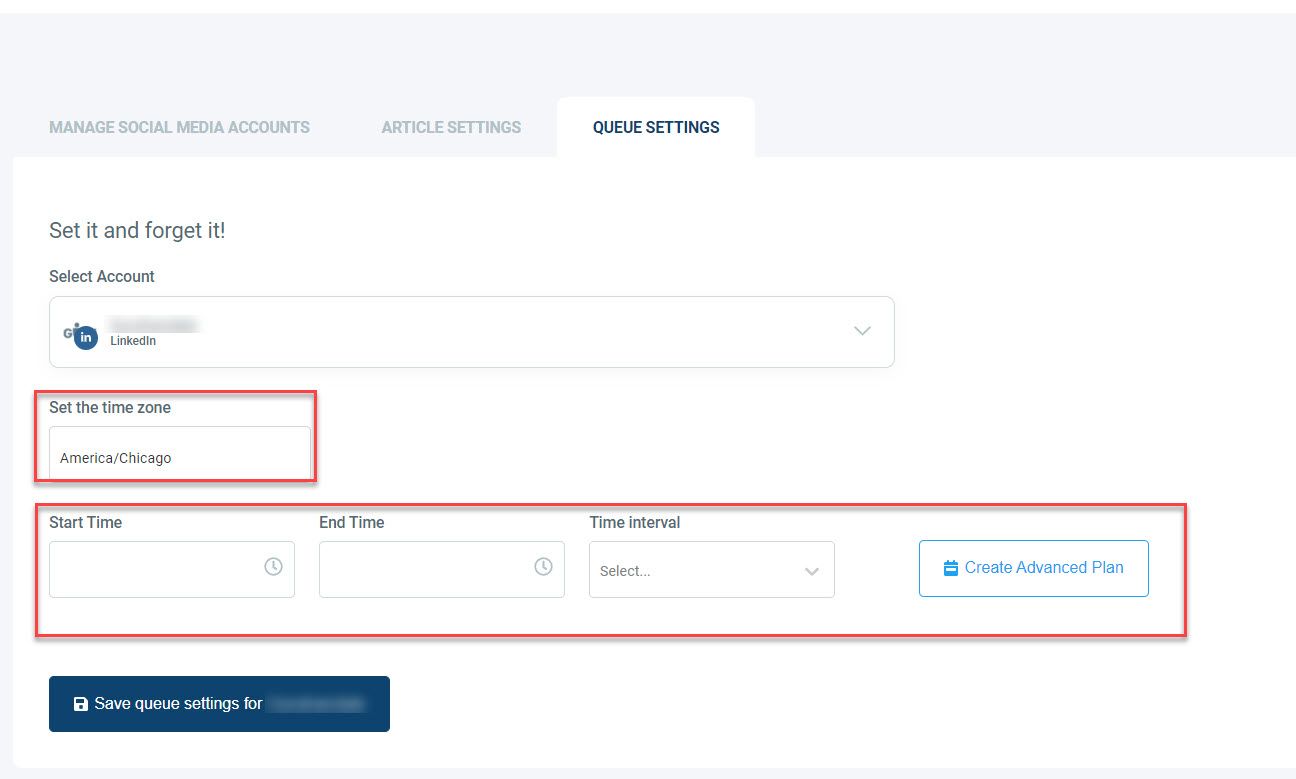 Then, to set your queue parameters, pick your LinkedIn profile once again.