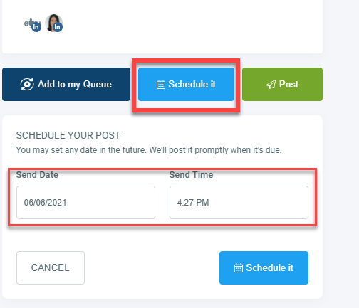 Step #3: After that, you can schedule LinkedIn posts individually based on a specific time and date.