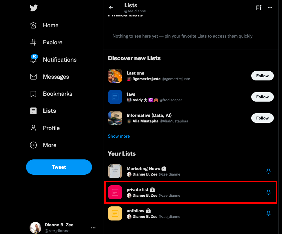 Let's say that right after you find out who follows who on Twitter by following the guide above, you have noticed some Twitter users you want to follow without anybody knowing. All you need to do is to create a private Twitter list by following the steps below: