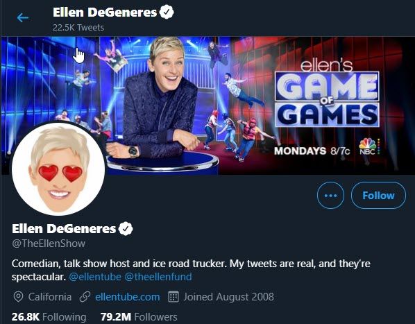 Ellen DeGeneres is talk show host of the last two decades and even more. Her show, Ellen, still holds huge viewing numbers and manages her a hit among the most follower on Twitter.