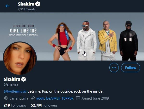 Shakira is actually a true pop singer account with various music videos and interviews here. Also, she doesn't abstain from advertising her music too.