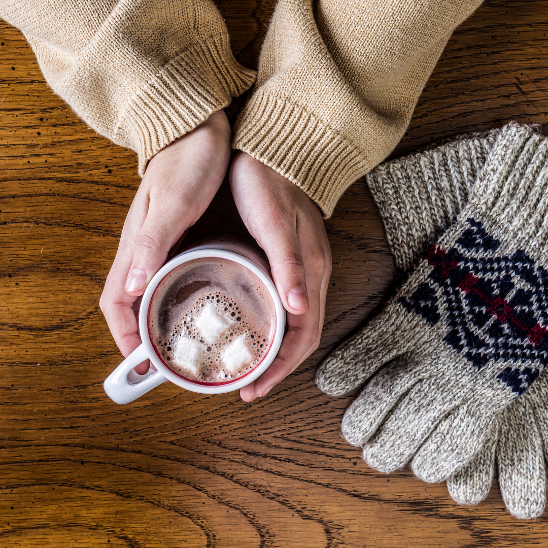 - Hot cocoa and cozy socks are winter must-haves.